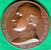 6. English 1896 bronze medal (76 mm dia.) by Sir George Frampton of Henry Arthur Colmore-Dunn in fencing jacket, author of the popular manual Fencing, who died of typhoid at the age of 37